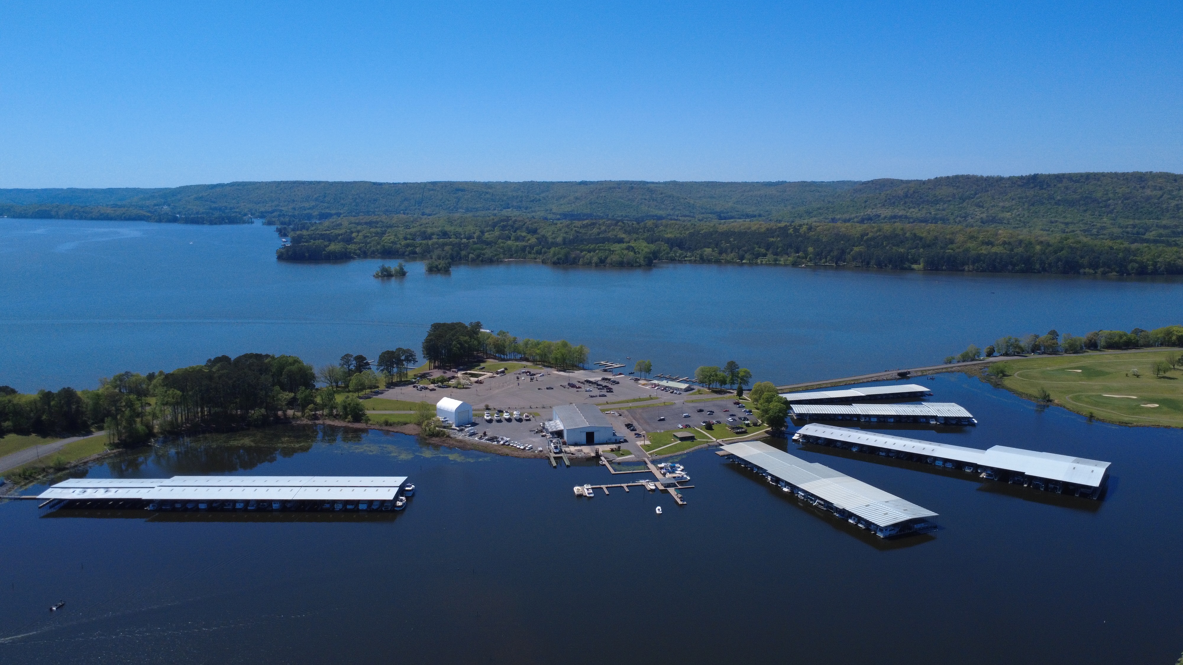 The Lake Course at Goose Pond Colony Resort is an 18-hole George Cobb design that opened in 1971. With Tennessee River views from every hole, this four-star course has hosted seven NJCAA Division II Championships and ranks as Alabama's top public golf course in North Alabama.